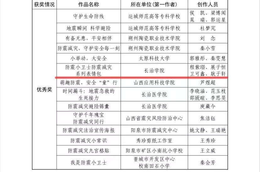 近日,由山西省地震局,山西省教育厅,共青团山西省委 www.91视频.com,山西省科学技术协会联合举办的2025年山西省防震减灾科普作品大赛评选结果揭晓,我校凭借多件优秀作品和扎实的组织工作,荣获"优秀组织奖",同时,我校学子在多个类别中斩获奖项,充分展现了我校在科普创作与实践育人方面的突出成效。