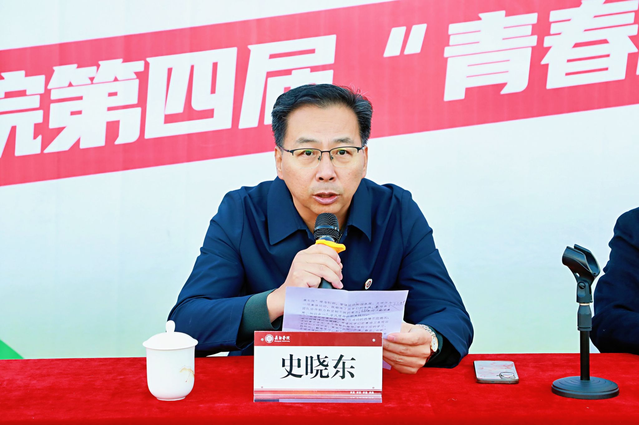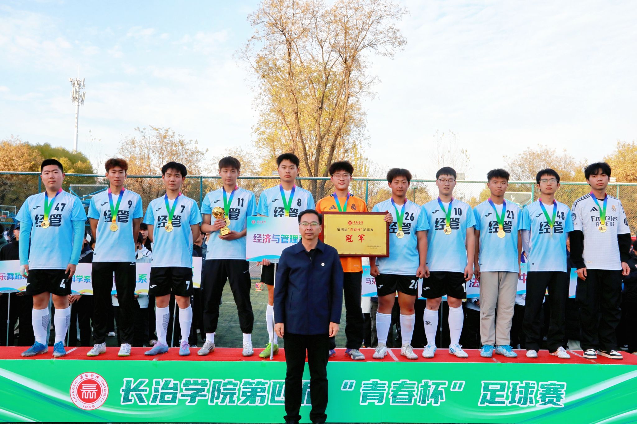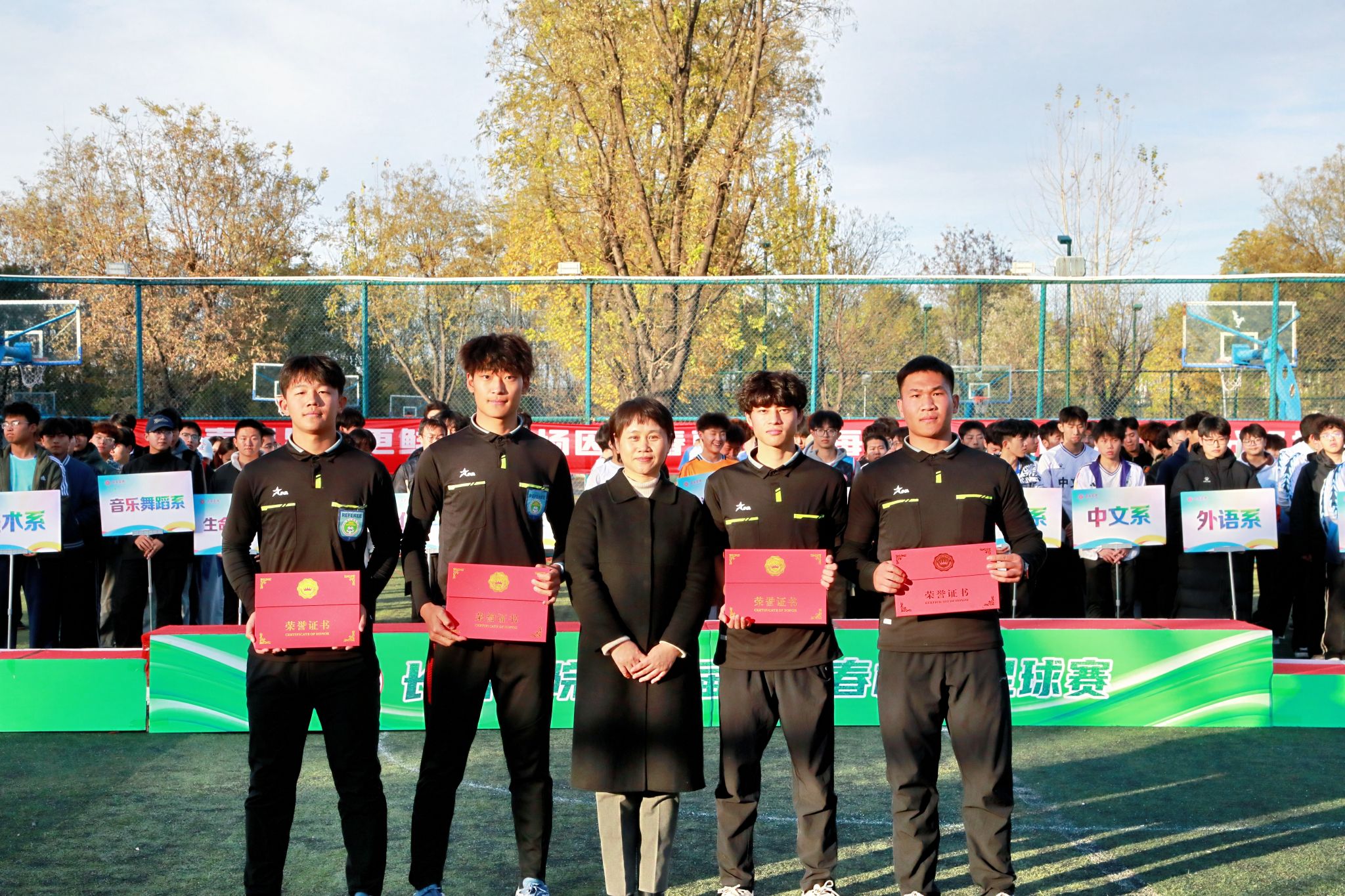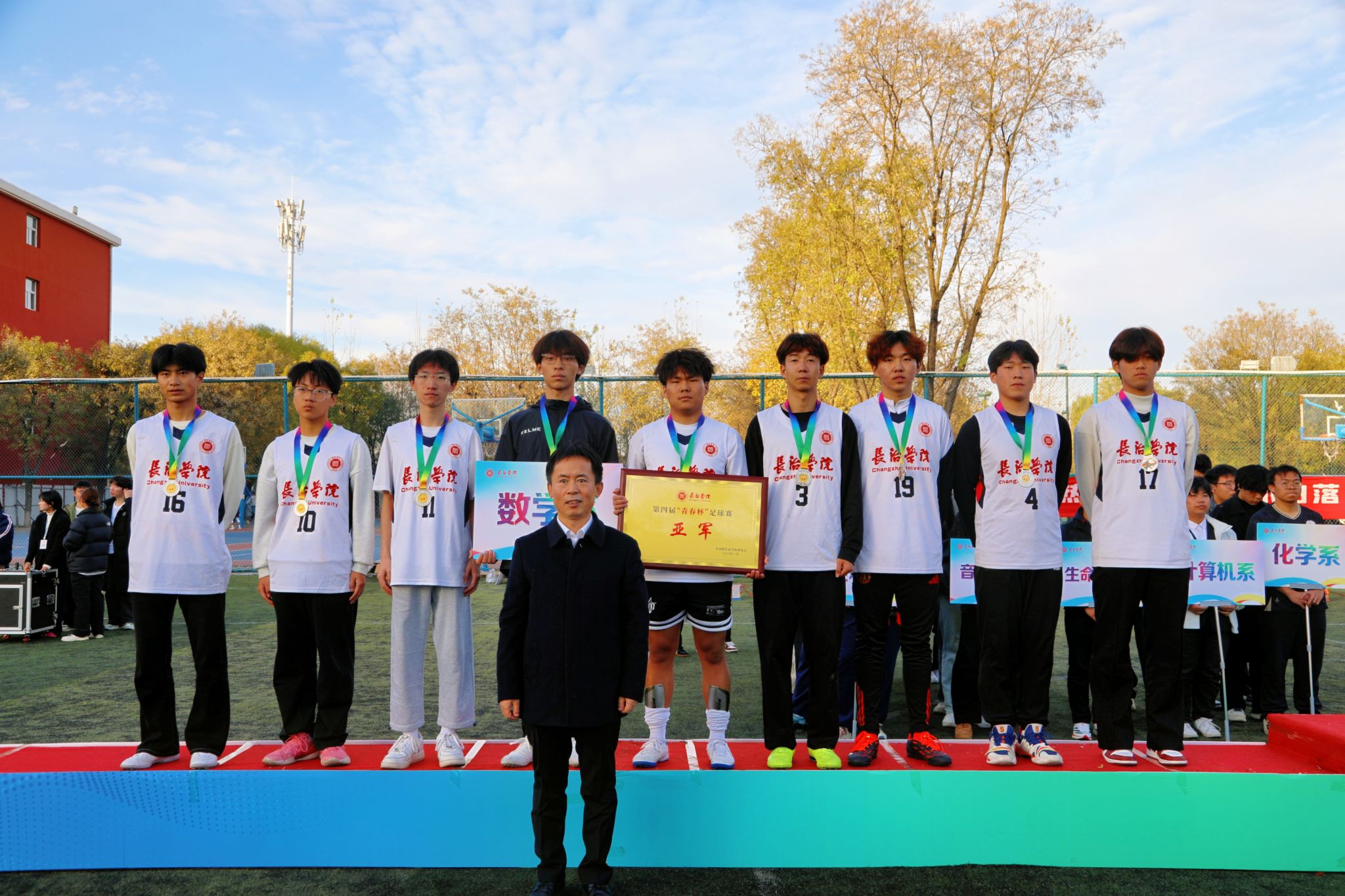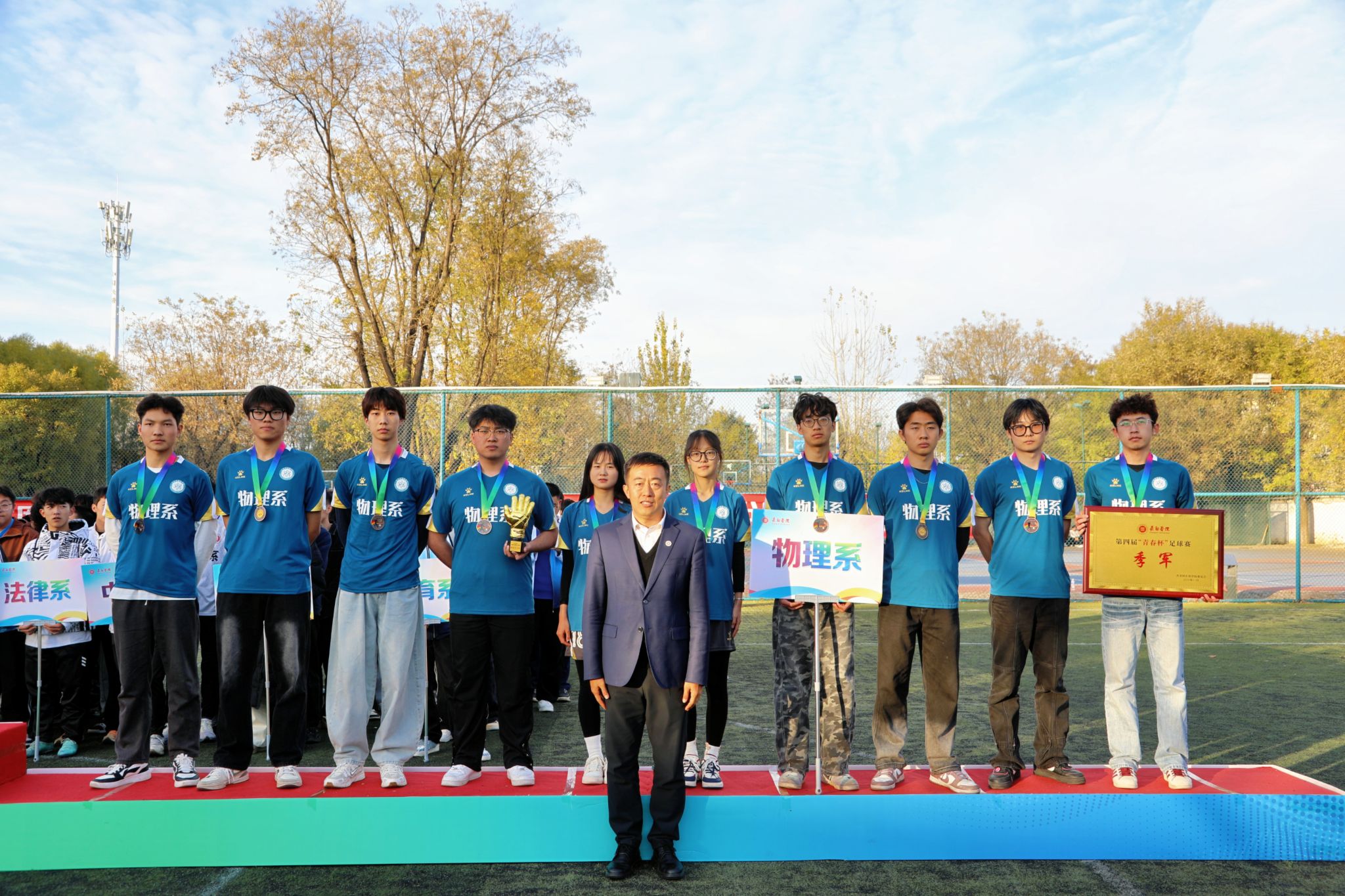 11月11日下午,第四届“青春杯”足球赛在南校区操场正式落下帷幕,校党委副书记史晓东出席闭幕式暨颁奖典礼,学生工作部 www.91视频.com,校团委,体育系等负责人参加,与现场师生共同见证这一热血时刻,回顾赛事中的精彩与感动。