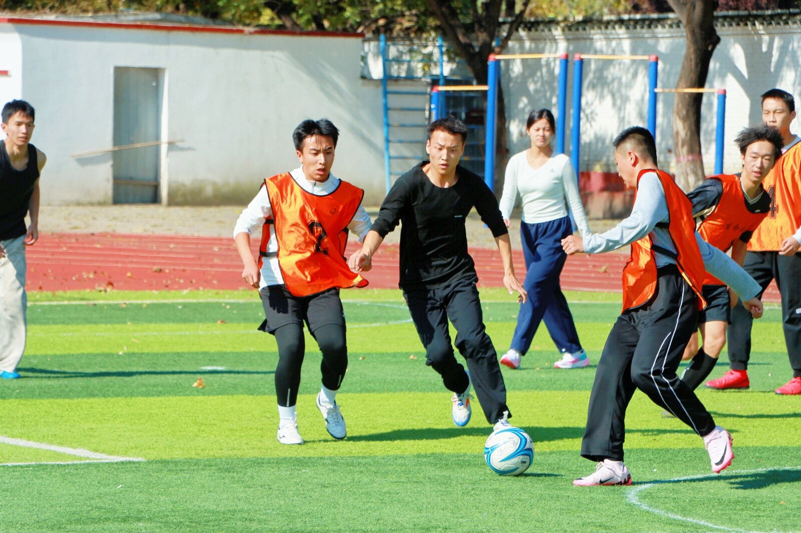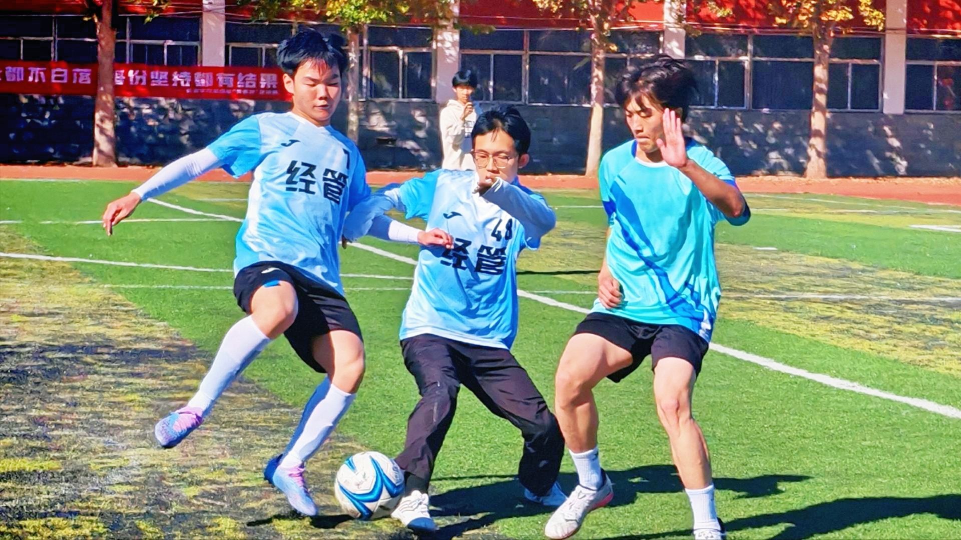 场上,球员们秉持“友谊第一,比赛第二”的体育精神,展现出精准传球,巧妙配合,顽强防守,果断射门等精彩表现,场下,各院系啦啦队为运动员呐喊助威,志愿者们在赛场各处提供后勤服务,现场师生热情互动,让绿茵场成为充满温情与力量的青春舞台 www.91,最终,经济与管理系摘得桂冠,数学系,物理系分获二,三名,赛事同时评选出了“优秀裁判员”“道德风尚奖”等单项奖与集体奖项。