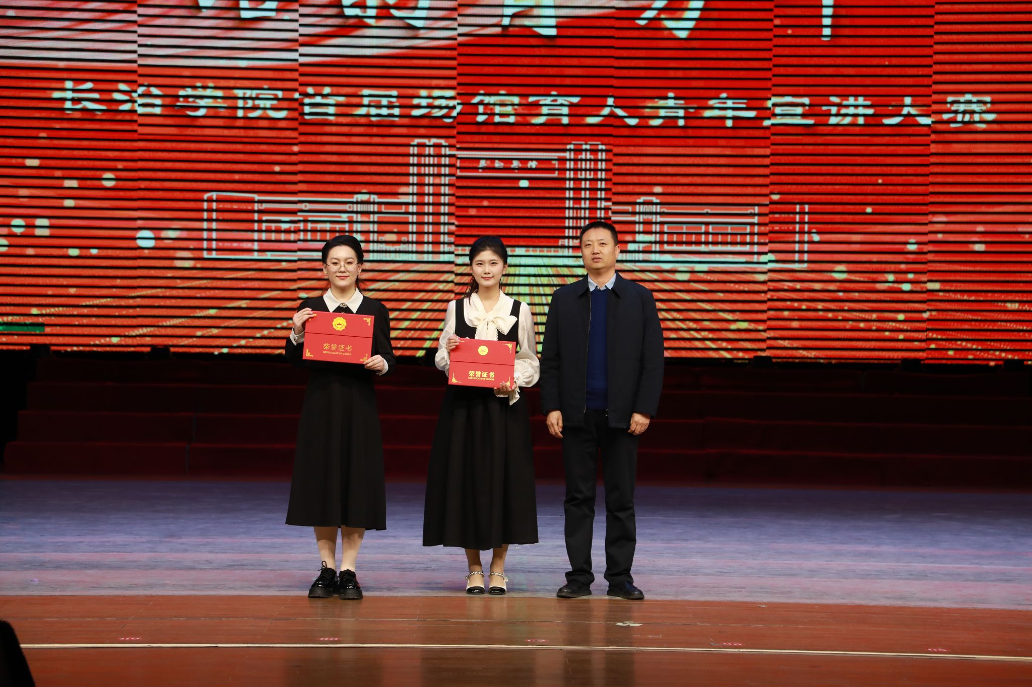 长治广播电视台影视创作中心主任燕山、共青团长治市委www 91视频网站. 91和权益部部长闫少逸为获三等奖教师颁奖.